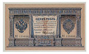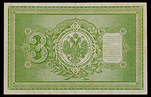 Государственный Кредитный Билет 3 рубля 1898 года, ГП 735629. С подписью управляющего С. Тимашева, кассир Софронов. Сохранность очень хорошая +. Кардаков# I.1.687 (1,5 дойчмарки). Денисов# К-25.2. Рябченко# 702а. Довольно редкий.