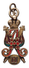 С.-Петербург, конец XIX – начало XX вв. Фирма «Д. Осипов». Без клейм. Серебро, золото, эмаль, 13,27 г. Размеры 32 х 25 мм. Сохранность отличная. Петерс, Ильина# 80. Утвержден 22.11.1897 г. Столетие полка отмечалось 20.4.1898 г. Принадлежал генерал-майору Ф. Ф. Новицкому. Жетон вложен в оригинальную коробку фирмы «Д. Осипов».
