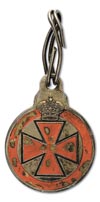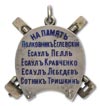 Жетон 4-й Кубанской казачьей батареи. Российская Империя, 1896 г. Неизвестная мастерская. Без клейм. Серебро, позолота, золото, эмаль, 35,34 г. Размеры 40,1 х 42,7 мм. Сохранность отличная. Принадлежал вахмистру С. Макаренко. На лицевой стороне жетона надпись на фоне эмали красного цвета: «ВАХМИСТРУ САВВIЪ МАКАРЕНКО». На оборотной стороне жетона надпись в шесть строк буквами синей эмали: «НА ПАМЯТЬ / Полковникъ Еглевскiй / Есаулъ Пеллъ / Есаулъ Кравченко / Есаулъ Лебедевъ / Сотникъ Тришкинъ». Редкий.