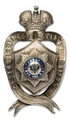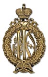 Знак Сводно-гвардейского батальона (для нижних чинов). С.-Петербург, конец XIX – начало XX в. Фирма «Гутхейль». Штамп на подложке: «ГУТХЕИЛЬ». Бронза, серебрение, эмаль, 31,21 г. Размеры 53 х 30,4 мм. Сохранность отличная. Патрикеев, Бойнович.2# 2.2. Утвержден в 1883 г.
