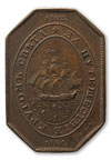 Медаль «За путешествие кругом света» в 1803–1806 гг., новодел. СПб монетный двор. Медальеры: лицевой стороны – В. А. Безродный (под обрезом: В•безродной.р:), оборотной стороны – К. А. фон Леберехт (внизу справа: c•Leberecht f). Бронза, 17,90 г. Размеры 39,8 х 27,6 мм. Сохранность почти отличная. Петерс# 22. СРМ# 272. Смирнов# 353/а. Дьяков# 305.1 (R1). Довольно редкая.