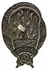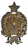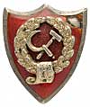 Знак командира Рабоче-Крестьянской Красной Армии. РСФСР, Москва, 1918–1922 гг. Фабрика «Бр. Бовдзей». Бронза, серебрение, эмаль, 26,25 г. Размеры 40,2 х 34,0 мм. Сохранность почти отличная, серебрение потерто. Знаки правоохранительных органов СССР# 1.3. Нагрудные знаки СССР. С. 348. Довольно редкий.