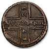 В каталоге Ю.Петрунина рассмотренный вариант этой монеты имеет оборотный штемпель отличный от представленного экземпляра – в цифрах даты «8» приподнята, нет точки в центре монограммы. Полную идентичность приведенного нами изображения оборотного штемпеля имеют следующие две монеты из его иконографии – G-№58.1 и Н-79.1.