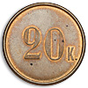 Жетон платежный, 20 к. (копеек), с вензелем «Т» и графской короной. Атрибуты принадлежат Городскому голове города Санкт-Петербурга Графу И. И. Толстому. Латунь, 5,11 г. Диаметр, 25,30 мм. Гурт гладкий, вырубка. Сохранность отличная, красивый штемпельный блеск. Тункель# 1074. Редкий.