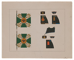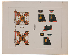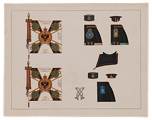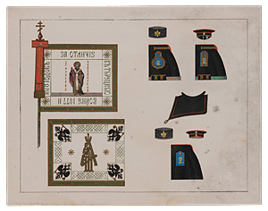 Литография с изображением элементов униформы, амуниции и атрибутики 2-го пехотного Софийского
