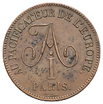 Жетон величиной с пятифранковую монету был отчеканен в честь Императора Александра I на Парижском монетном дворе после вступления союзных войск в Париж 19/31 марта 1814 г. Надписи:
