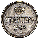 Полушка 1864 года, ЕМ. Об. ст.: цифра даты «4»