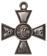 Георгиевский крест 3-й степени № 70587.