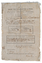 К знаку ордена прилагаются два документа на сержанта 2-го пешего стрелкового полка Французской армии Франсуа Берлокэна от 10 сентября и 3 октября 1815 г. Кавалер ордена Почетного Легиона с 21 февраля 1814 г. Сохранность очень хорошая.