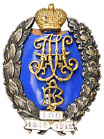Российская Империя, 1912-1917 гг. Неизвестная мастерская. Бронза, серебрение, позолота, эмаль, 33,07 г. Размеры 51,7 х 39,2 мм. Сохранность очень хорошая, сколы эмали вверху знака под императорской короной, крест на короне утрачен. Патрикеев, Бойнович.1# 1.1.40. Утвержден 8 декабря 1912 г. Интересный, более крупный, вариант знака.