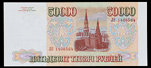 Банк России. Билет 50000 рублей 1993 года, ЛО 1406564,