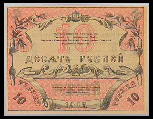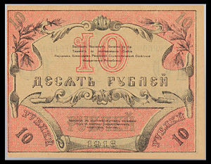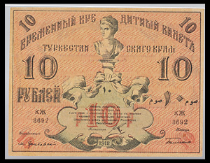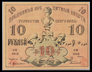 Туркестанский Край. Временный Кредитный Билет 10 рублей 1918