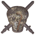 8 июля 1917 г. верховный главнокомандующий Русской армией генерал от кавалерии А.А.Брусилов подписал приказ № 578, установивший окончательную форму армейских частей смерти в виде красно-черного угла (шеврона) на рукаве и «Адамовой головы» с лавровым венком и скрещенными мечами на головном уборе. 25 июля 1917 г. на заседании Исполнительного бюро Всероссийского Военного Союза было принято решение о разделении значков по цвету на солдатские – белые и офицерские – золоченые. Первые партии значков были заказаны на фабрике металлических изделий В.К.Збука в Москве. На головные уборы значки крепились при помощи напаянных с тыльной стороны ушек. К моменту октябрьского переворота по спискам Всероссийского Военного Союза насчитывалось 312 кадровых частей смерти, личный состав которых превышал 600000 человек. С приходом к власти большевиков пеструю «смертную» униформу, как, впрочем, и само движение, ждал бесславный конец. Приказом главковерха Н.В.Крыленко № 979 от 9 декабря 1917 г. части смерти были упразднены и частично расформированы, а на следующий день постановлением Центрального Исполнительного комитета Совета рабочих и солдатских депутатов были упразднены и все наружные знаки отличия. См. Иванов Д. «Рожденный на заре свободы – за нее умрет…». Части смерти в русской армии 1917 // Военный сборник. Статьи и публикации по российской военной истории до 1917. М., 2004. С. 113–125.